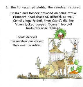 Santa sees an ad for robotic reindeer and decides his reindeer are too old and must be retired. Sure to delight those from three to 93.